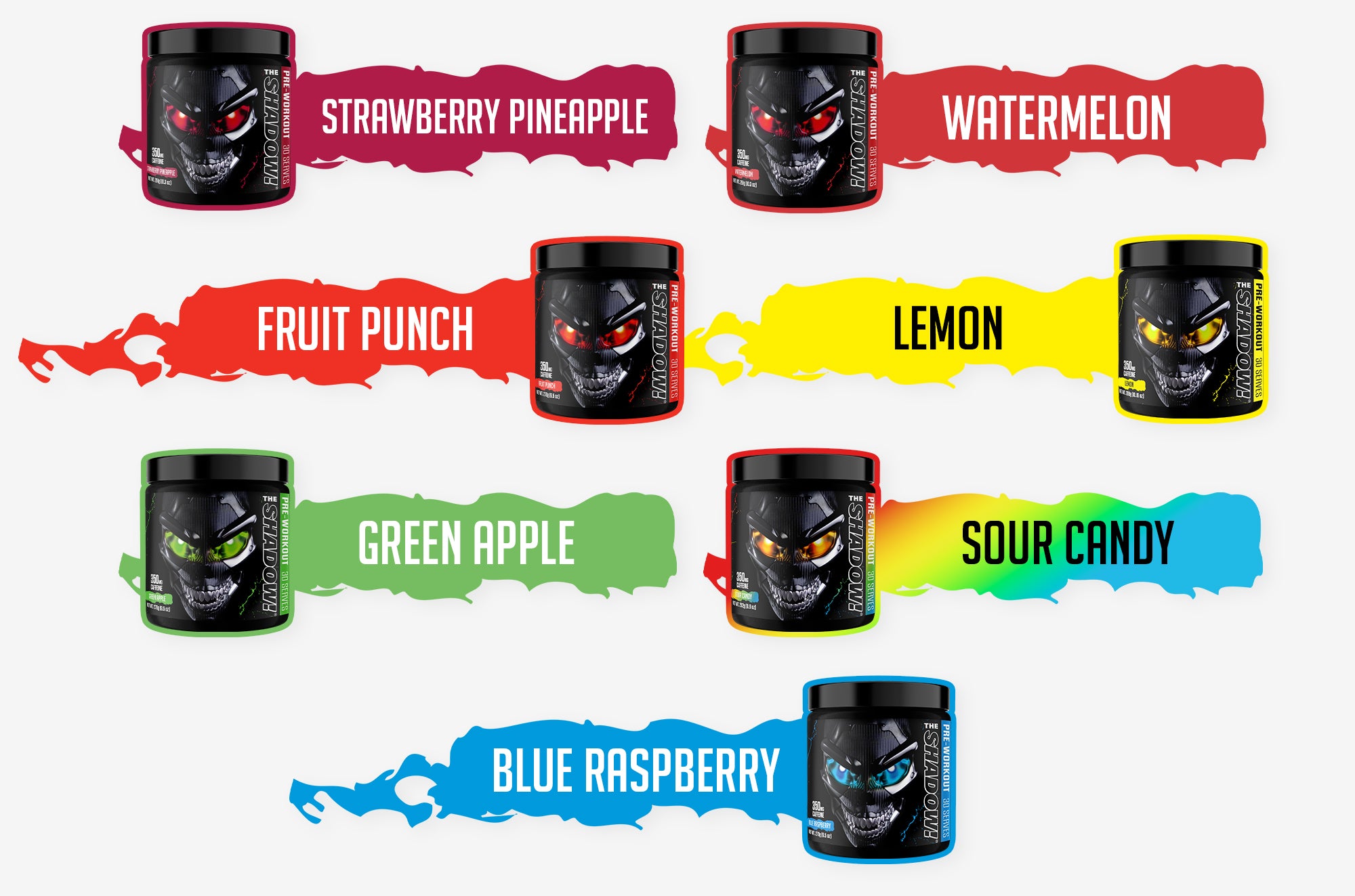 The Shadow! is a full powered pre-workout for hardcore users only. With 350mg of caffeine per serving, and 2000mg of Beta Alanine, The Shadow! delivers unsurpassed energy, hypnotic intensity and hard hitting strength like no other pre-workout on the market.*